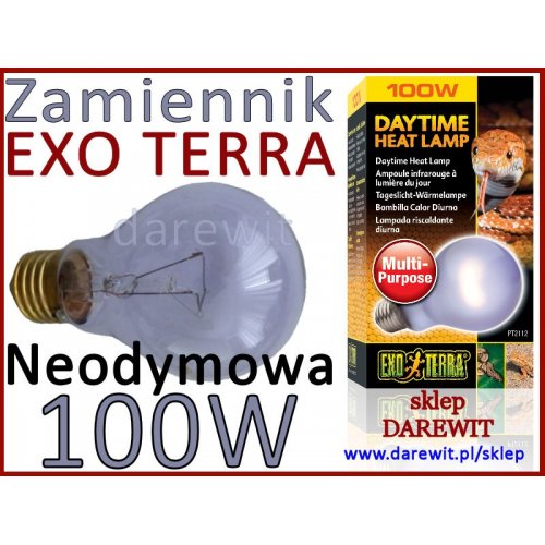 Żarówka wolframowa z dodatkiem neodymu (E27, 100W) przeznaczona do terrariów, aqua-terrarium oraz upraw pod osłonami. Zapewnia skoncentrowane światło dzienne oraz efekt dogrzania strefy wygrzewania (basking spot) w jednym źródle 2w1.