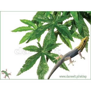 Exo Terra Abuliton (Abutilon) to piękna sztuczna roślina z plastiku, która wyglądem przypomina naturalny Zaślaz. Każdy detal liścia i łodygi jest niezwykle realistycznie wykonany z bezpiecznego dla zwierząt tworzywa. Ta pięciopalczasta roślinka sprawdzi się w terrarium tropikalnym i wilgotnym. Stworzy gąszcz i "parasol" ochronny dla Twojego kameleona, gekona, anolisa lub żaby. Węże prowadzące nadrzewny tryb życia również będą Ci wdzięczne za tą roślinę.