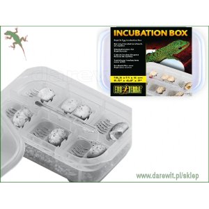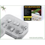Exo Terra Incubation Box (PT2443) to plastikowy pojemnik z wentylacją i temometrem przeznaczony do władania jajek wylęgowych gadów (agam, kameleonów, węży i żółwi). Chroni jaja przed przesuszeniem i pozwala utrzymać stałą wilgotność wewnątrz. Doskonale pasuje do Inkubatora Exo Terra Pro oraz innych producentów.
