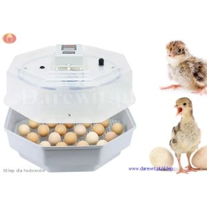 Model mieści do 60 jaj kurzych, posiada automatyczny termostat i umożliwia prowadzenie pełnego cyklu inkubacyjnego – od pierwszego dnia, aż do fazy klucia.